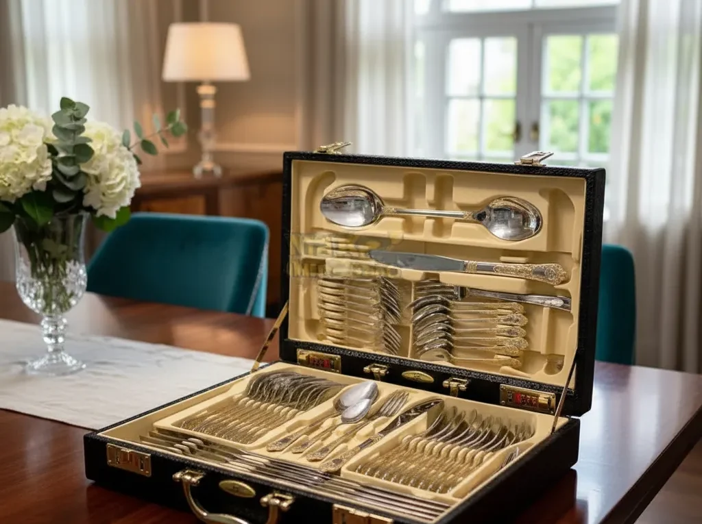 Além disso, o fato de o faqueiro ser entregue em uma maleta de couro sintético, com sistema de código, não só protege as peças, mas também destaca o produto como um item de prestígio, ideal para presentes ou ocasiões especiais.
